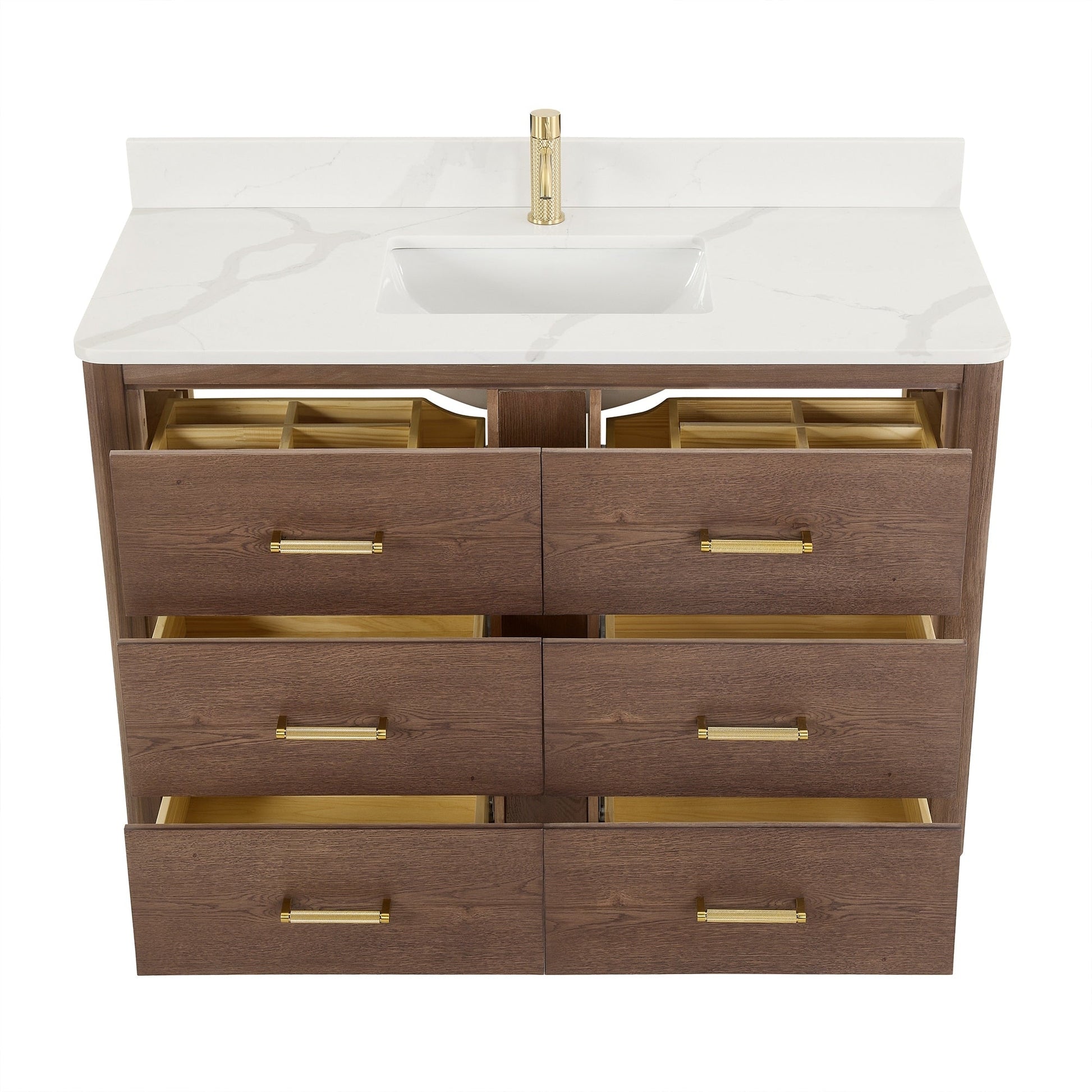 48 pouces - Six tiroirs à queue d'aronde robustes à fermeture douce sont dotés de cloisons intégrées pour un accès facile à tous vos articles de toilette.