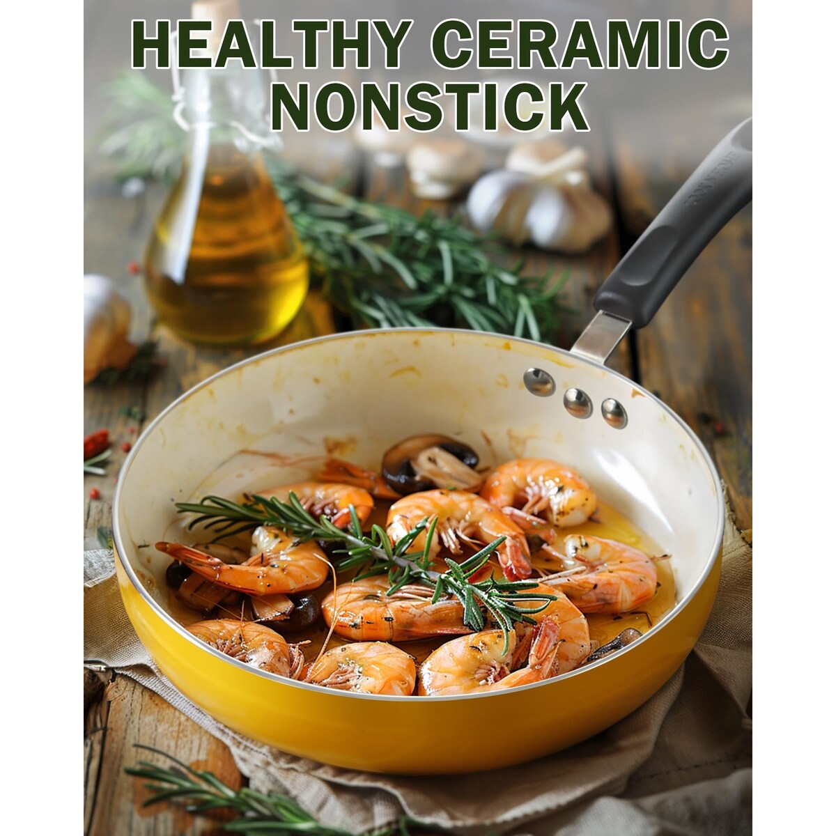 Ensemble de casseroles et poêles antiadhésives, batterie de cuisine en céramique 10 pièces, ensemble de cuisson antiadhésif avec casseroles