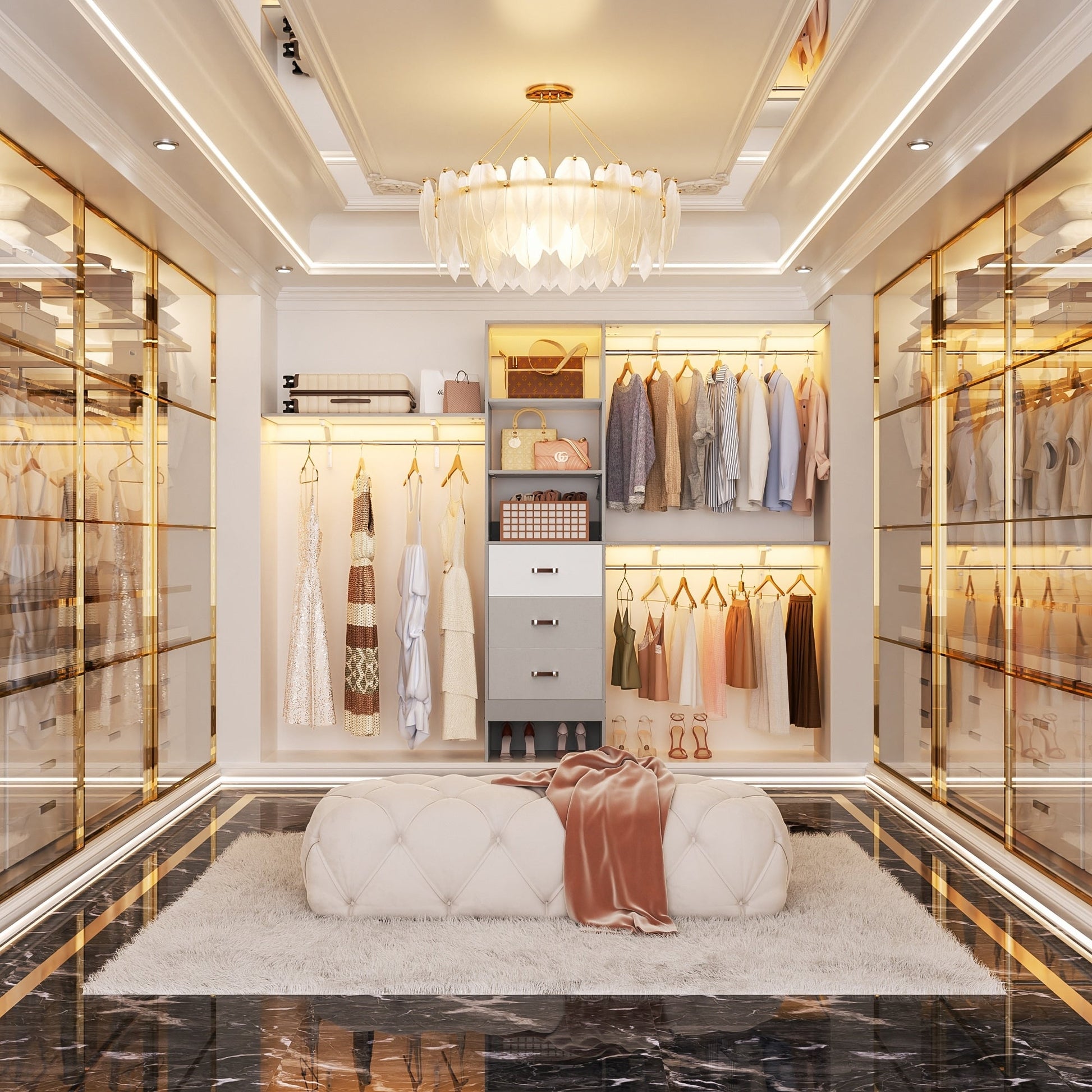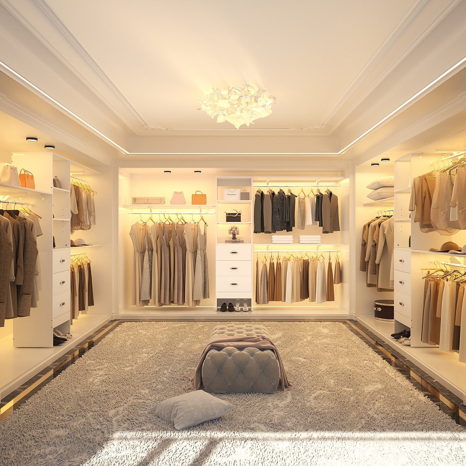 Rackcog Organiseur de placard réglable de 120 pouces avec tiroirs, système de placard avec étagères de bricolage pour placards et dressings
