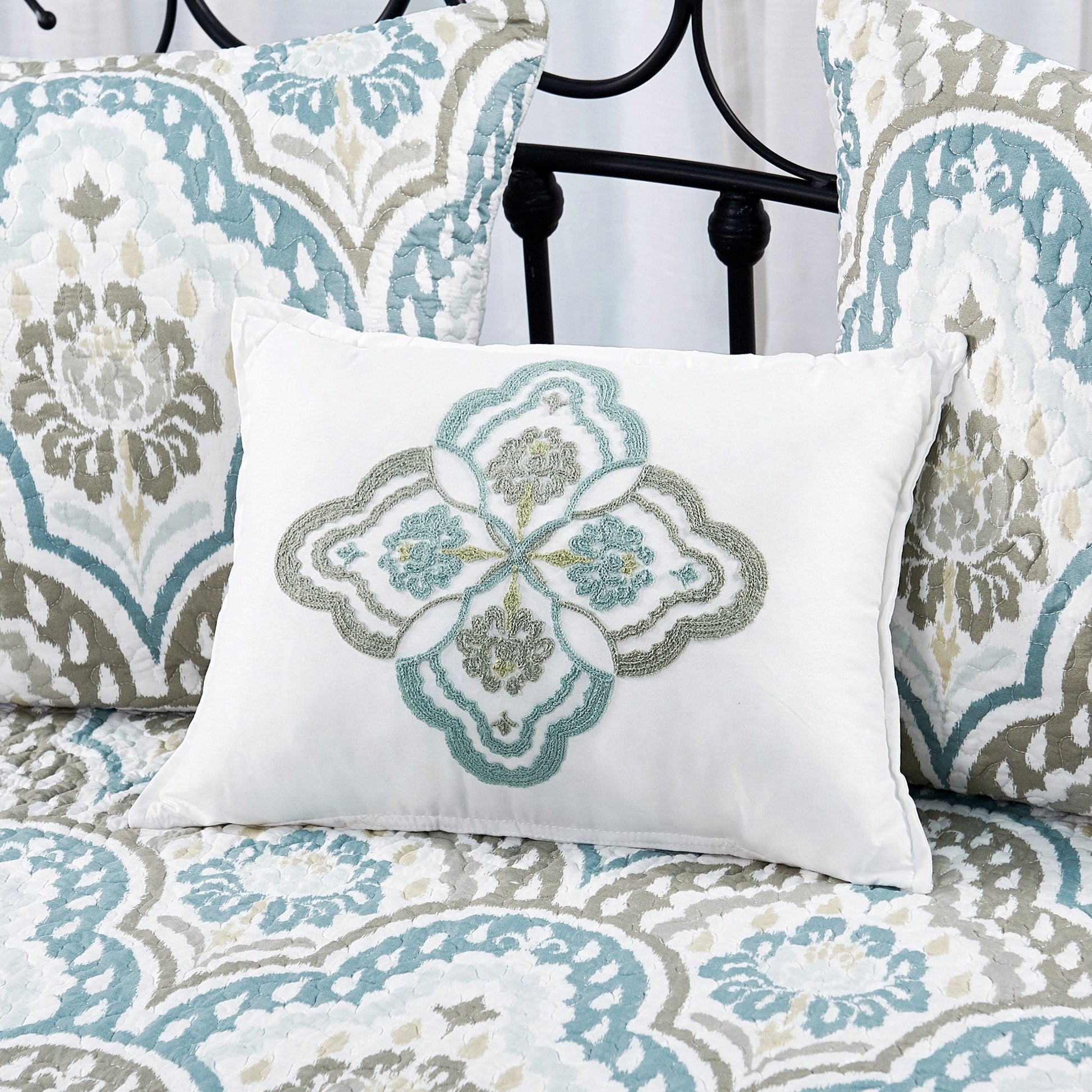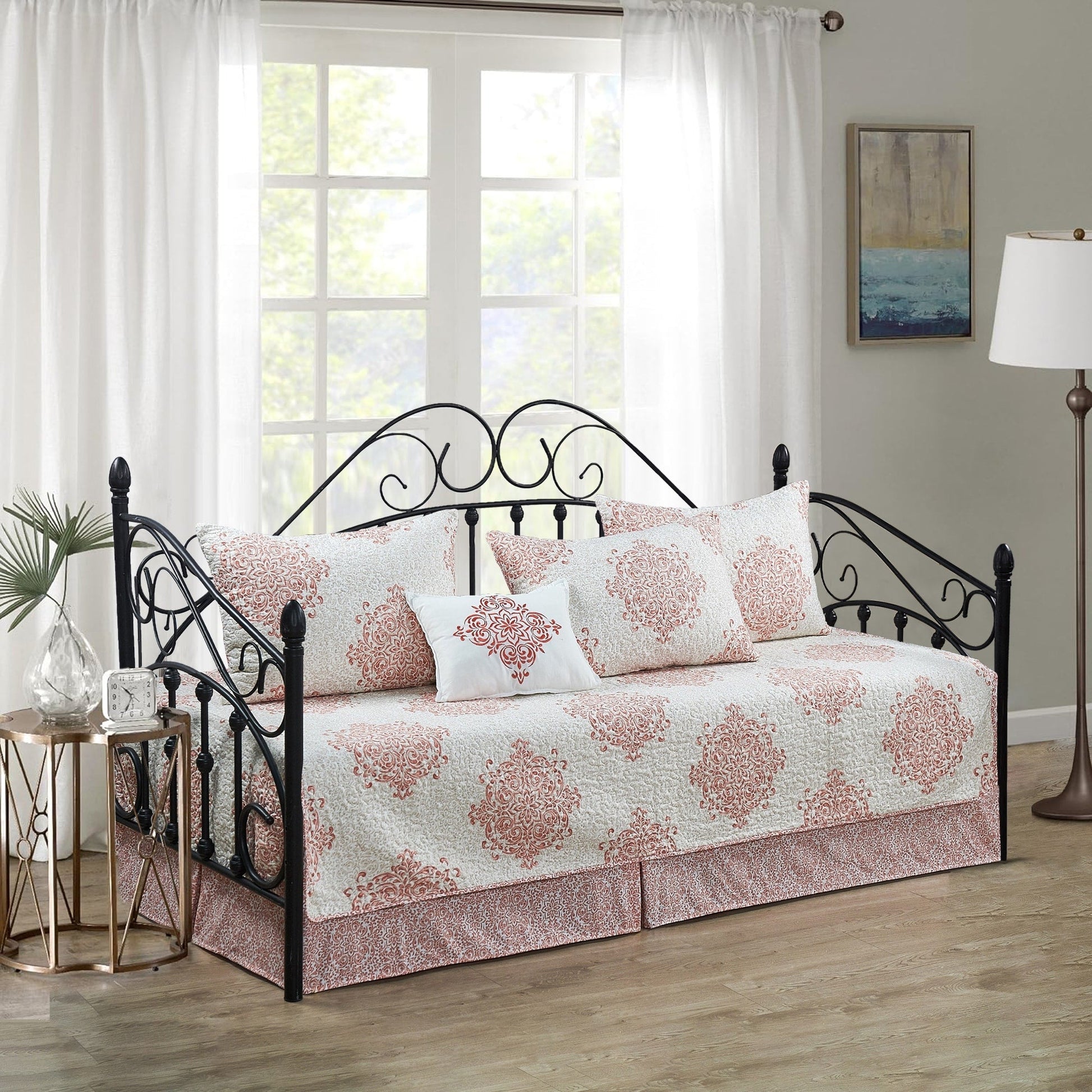 Make your daybed a more inviting space for napping and lounging with this Serenta six-piece bedspread coverlet set. This set has 90-percent cotton and 10-percent polyester filling for comfort and warmth. It's heat-treated to lock in color for lasting vibrancy and is machine washable for hassle-free care.