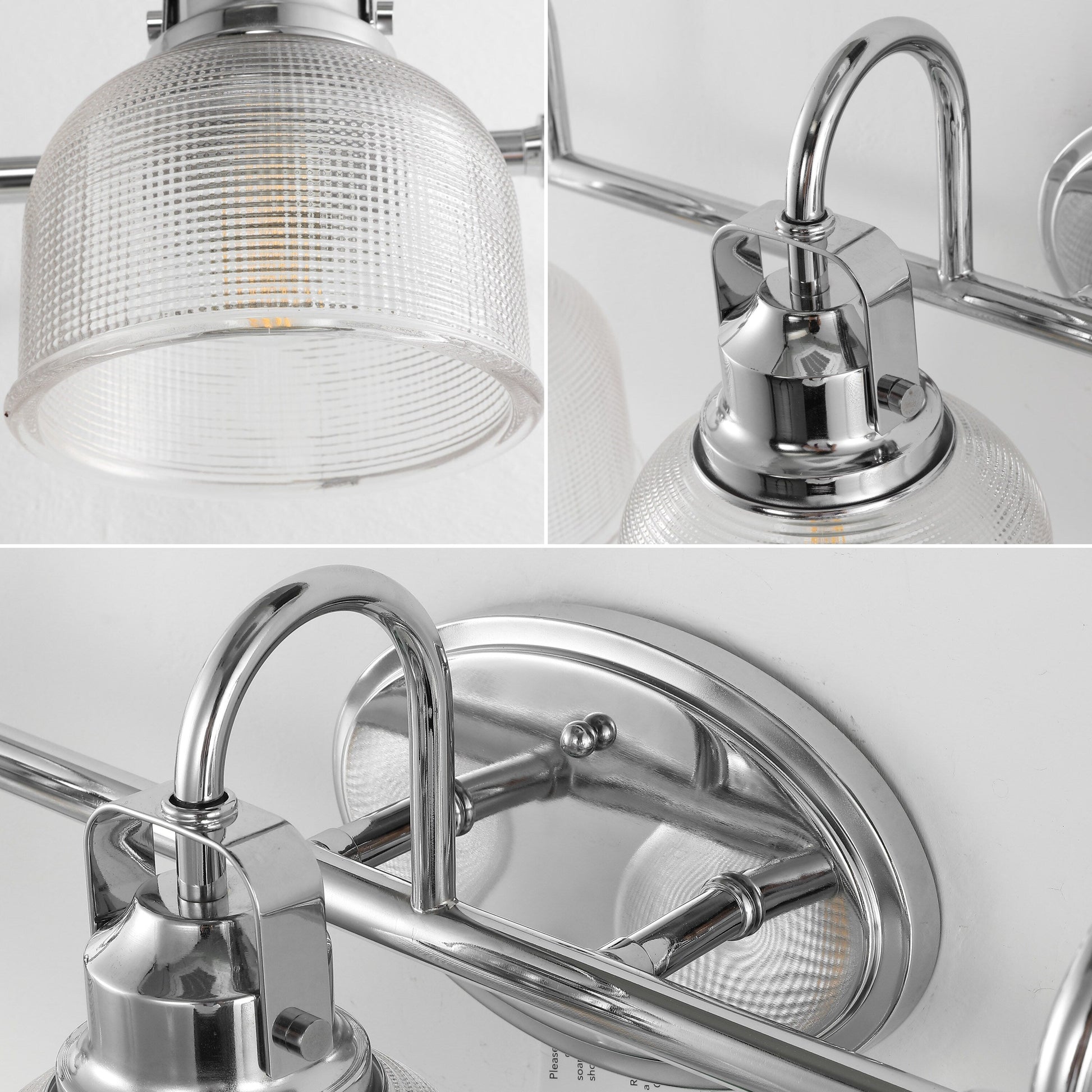• Textured glass and polished chrome come together to create a chic, classic combination for this sconce