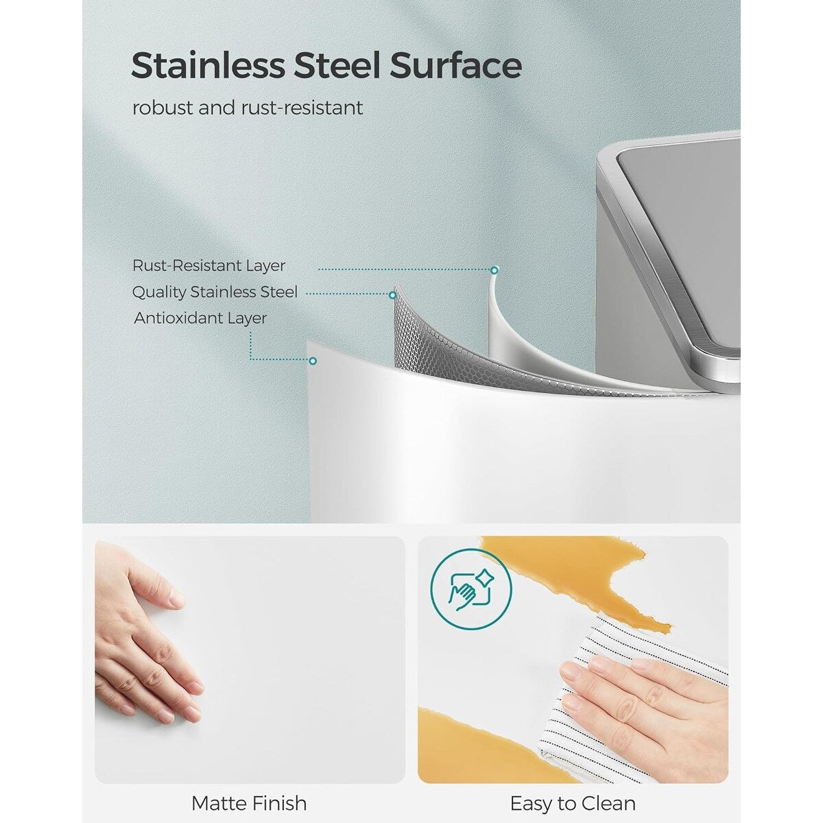 - [Solide mais doux] Le corps rigide en acier inoxydable de cette poubelle résiste à une utilisation durable ; le couvercle à fermeture douce garantit que l'environnement reste paisible, sans claquement bruyant à entendre