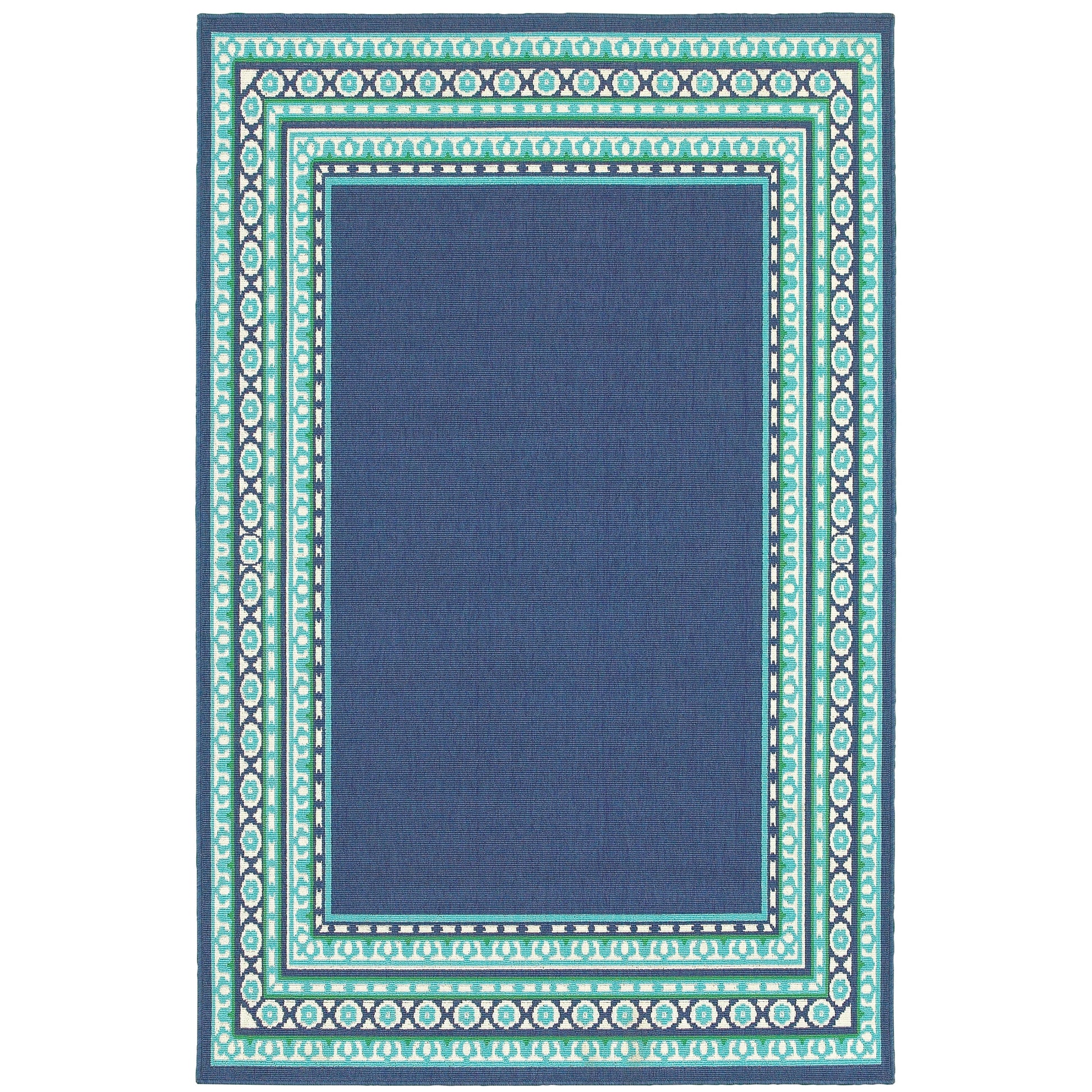 Style Haven Martinque Green Bordered Navy Indoor/ Outdoor Area Rug~