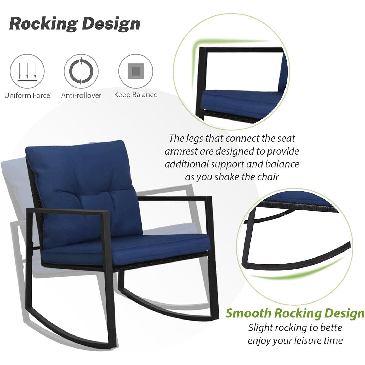 Détendez-vous avec style grâce à l'ensemble bistrot d'extérieur 3 pièces SUNCROWN en osier à bascule. Cet ensemble robuste comprend deux chaises à bascule rembourrées et une table basse carrée, le tout fabriqué avec une structure en fer et de l'osier tressé en polyéthylène. Les chaises sont dotées de coussins en polyester avec rembourrage en éponge de différentes couleurs et de housses zippées. Avec son design contemporain et sa finition noire, cet ensemble s'intègre parfaitement à tous les intérieurs.