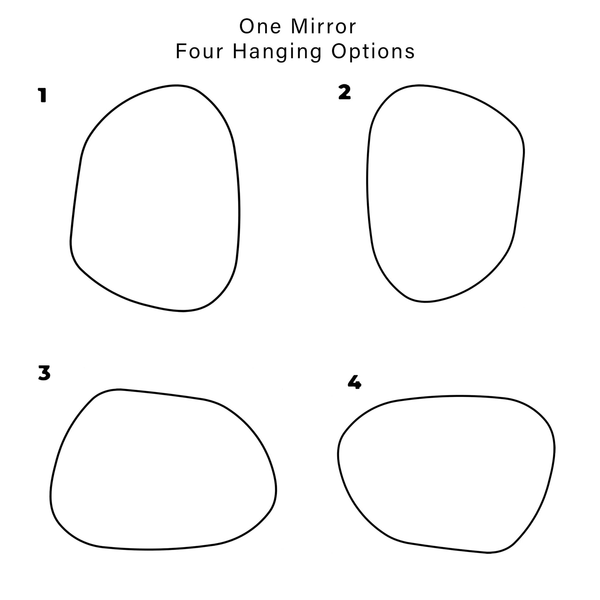 - Multiple Hanging Options: Cleverly designed with total 4 hanging options. Thanks to the irregular shape of this mirror, you can always create your own look and statement based on your own mood.