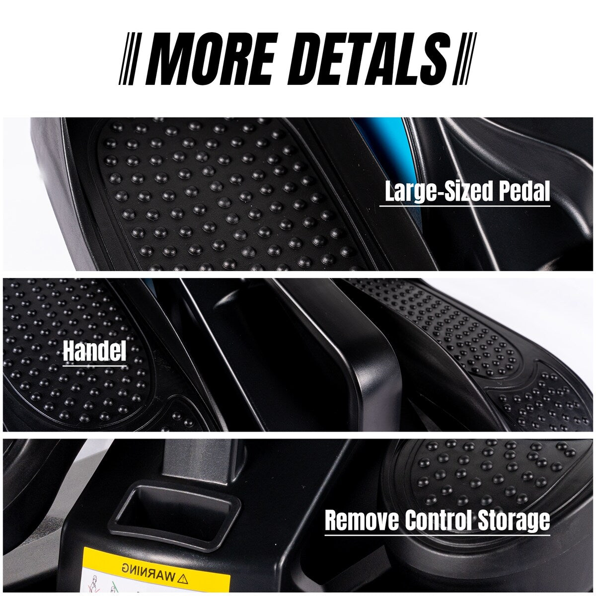• SILENT ELECTRIC PEDAL EXERCISER :Crafted with a steel flywheel and a noiseless friction pad, Our elliptical exercise machine provides a silent exercise experience. It allows you to exercise anytime and anywhere, without disturbing your colleagues or family.
