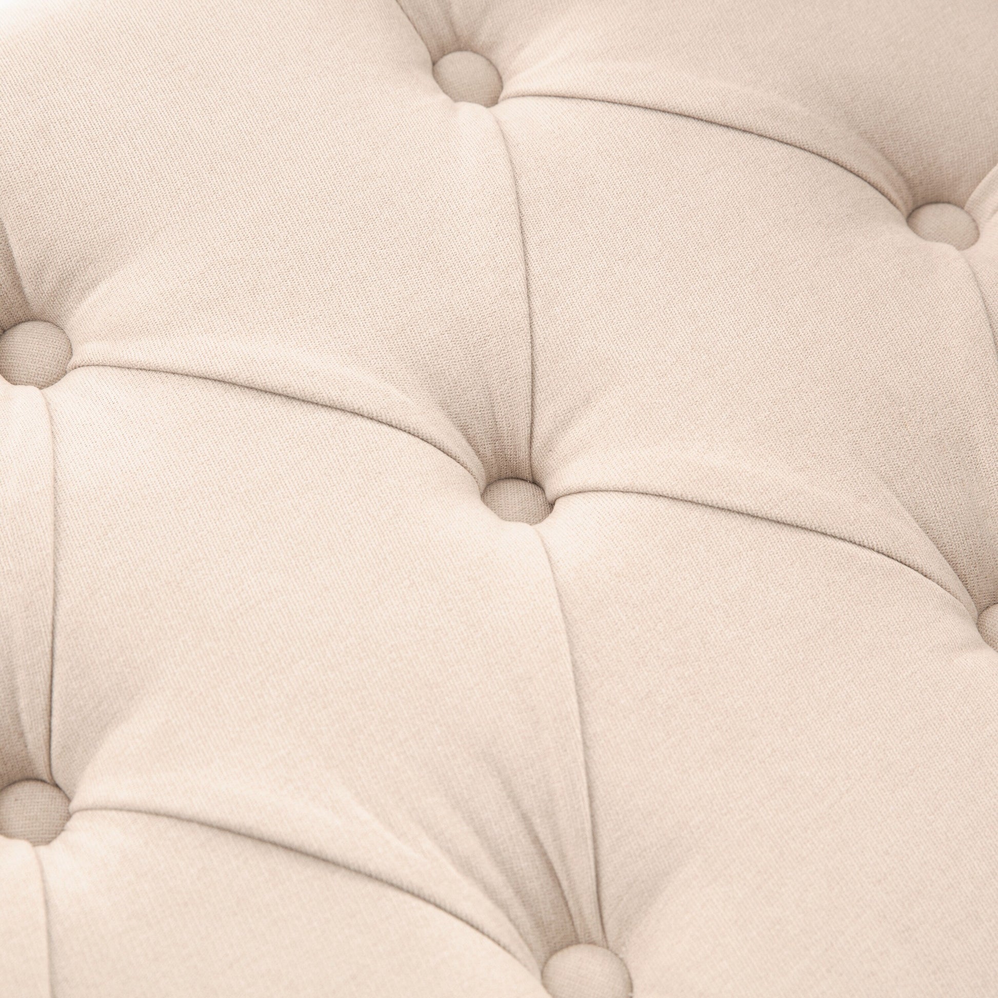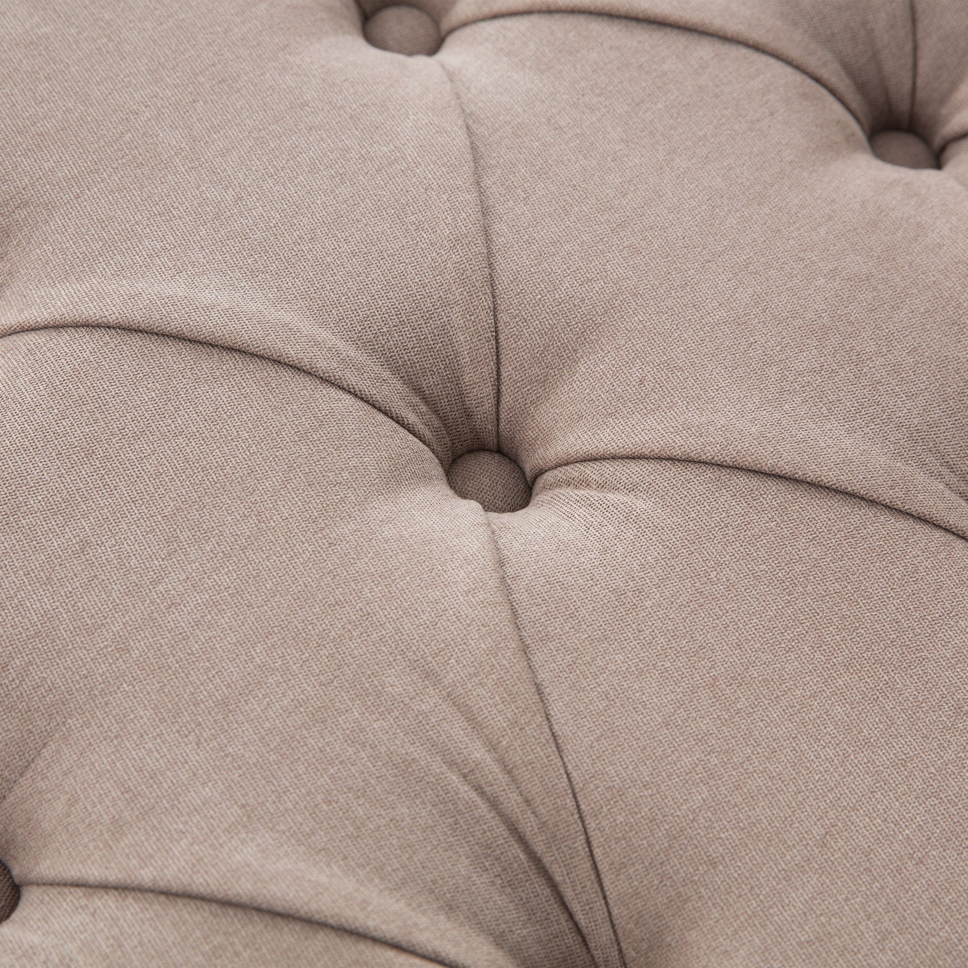 • Design élégant à rabat touffeté et accoudoirs roulés