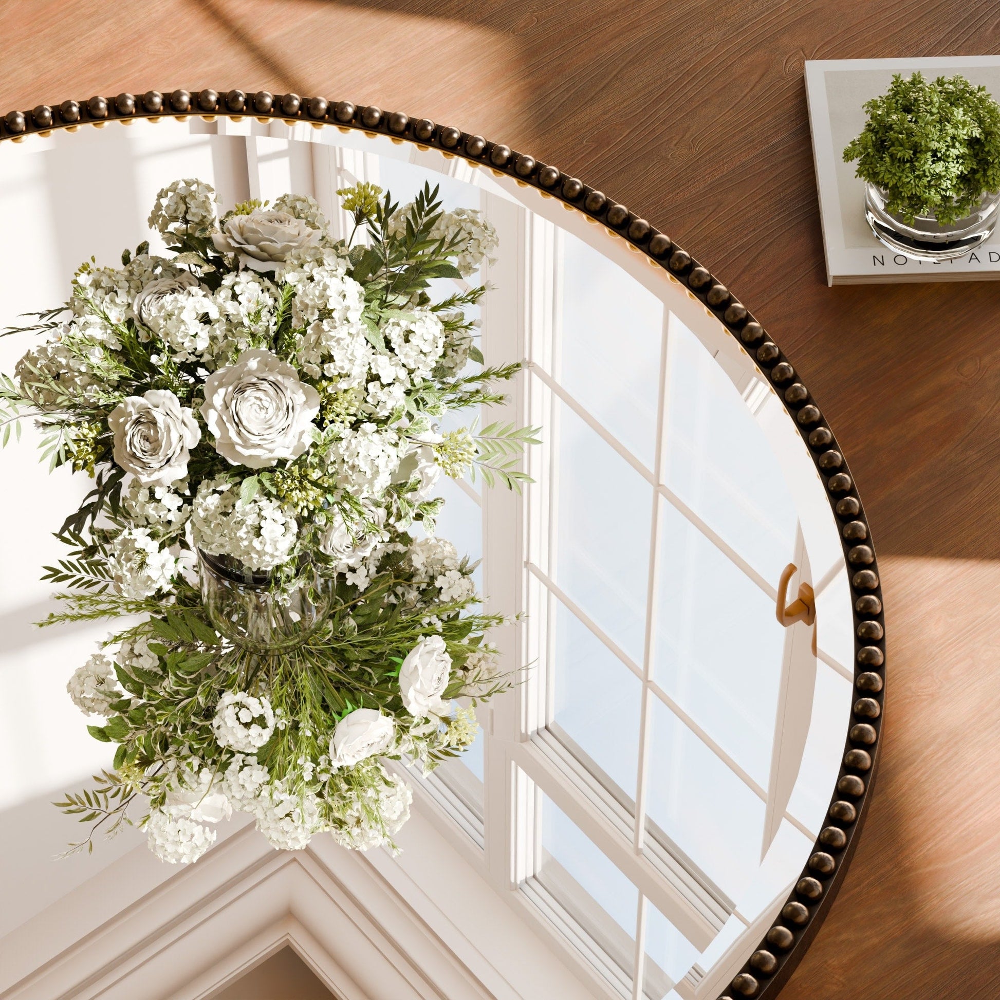 - Classic Design:Featuring a round shape with a beaded trim, it adds subtle visual texture, complementing entryways, bathrooms, living rooms, or bedrooms with classic style.