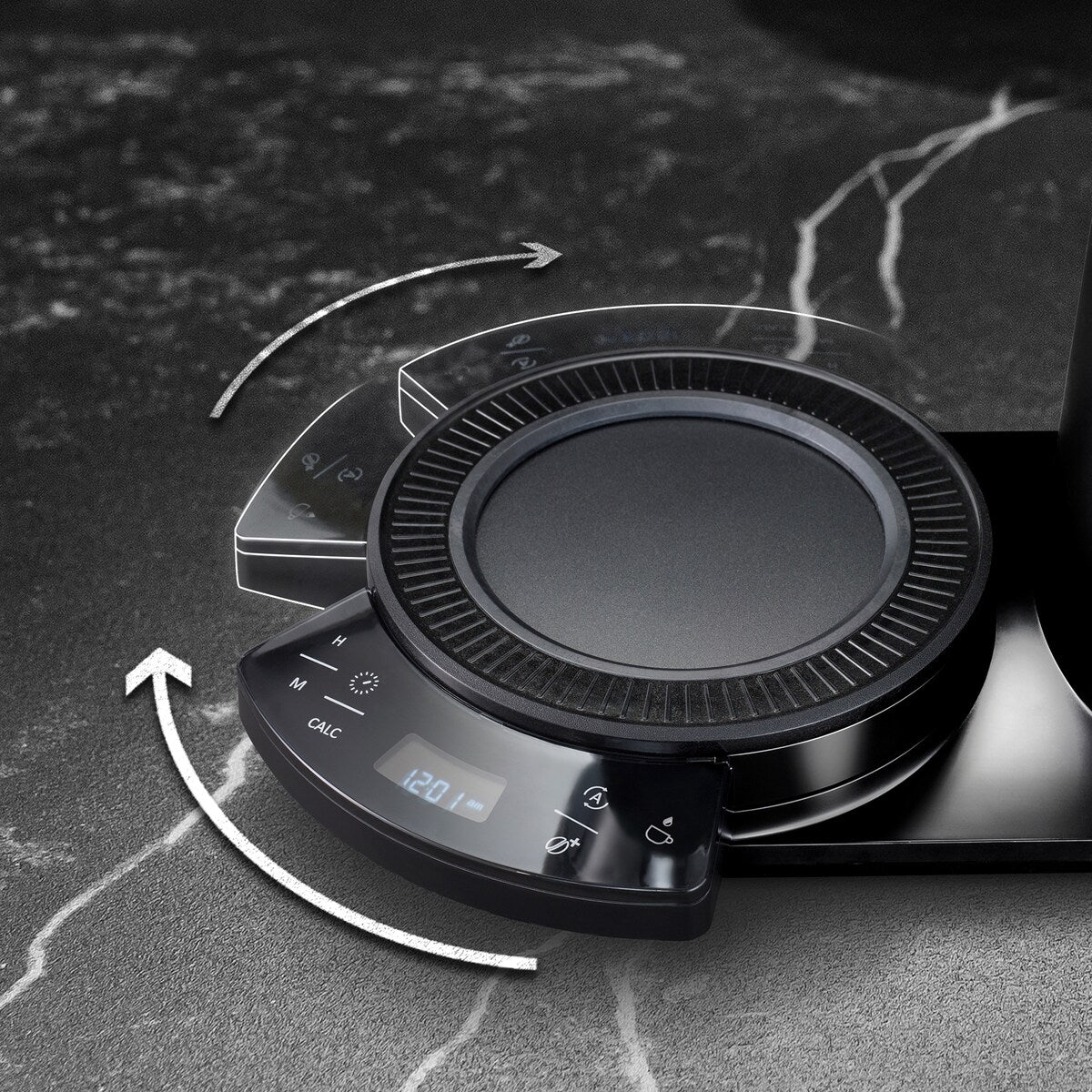 - Le tableau de bord pivotant permet de positionner la cafetière dans différentes positions sur le plan de travail. Conçu pour les droitiers comme pour les gauchers.