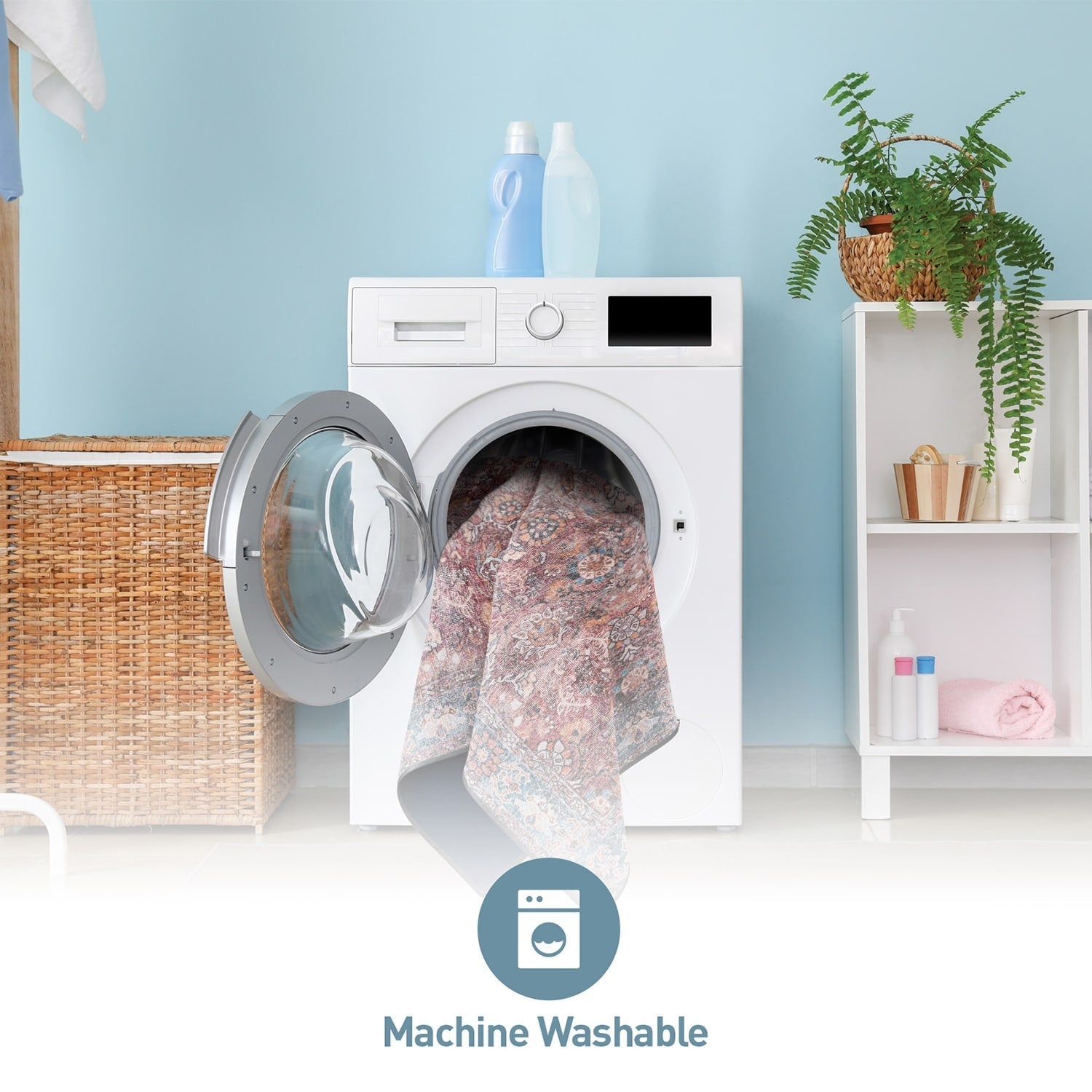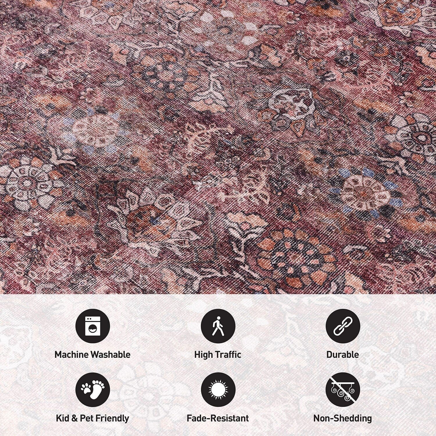 Unveil the timeless elegance of our machine-washable polyester area rug, seamlessly merging global-inspired and traditional Oriental influences. Revel in the luxurious comfort and durability that this rug brings to your space. Perfect for high-traffic areas and pet-friendly households, its flat-woven design ensures effortless maintenance. Crafted from OEKO-TEX certified premium recycled materials, it's a conscious choice that effortlessly blends cultural richness with sustainability.