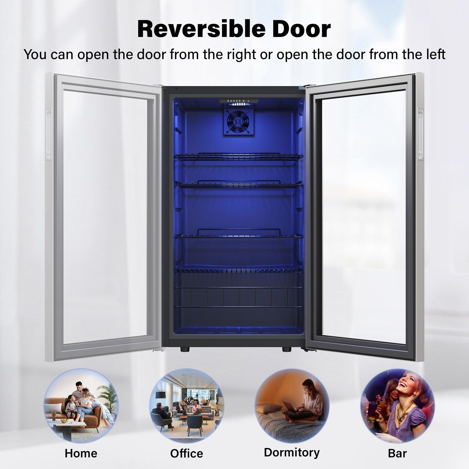 - Design élégant avec protection UV : La porte en acier inoxydable et le double vitrage anti-UV apportent une touche moderne à toute pièce et protègent vos boissons des rayons UV nocifs. La conception isotherme et résistante à l'humidité garantit la fraîcheur des boissons, préservant ainsi leur saveur et leur qualité d'origine.